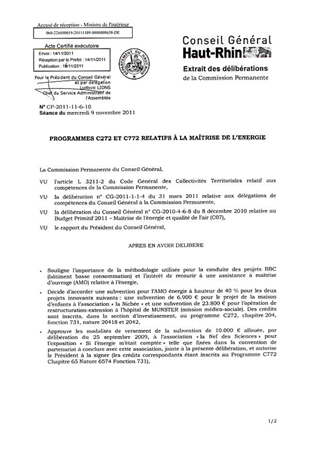 La méthodologie utilisée pour la conduite des projets BBC (bâtiment basse consommation), qui nécessite le recours à des techniques constructives nouvelles et la mobilisation de compétences spécifiques, constitue un point central pour la bonne fin des opérations de construction durable. Le recours à une assistance à maîtrise d’ouvrage (AMO) relative à l’énergie est la solution la plus probante, pratiquée par les collectivités alsaciennes et également développée dans les pays limitrophes pour aboutir au label « Passiv Haus » allemand ou au standard « Minergie » helvétique. Le Conseil Général soutient l’AMO énergie à hauteur de 40 % et ce rapport propose de retenir le projet de maison d’enfants de l’association « la Nichée » pour une subvention à hauteur de 2.760 € et l’opération de restructuration-extension à l’hôpital de MUNSTER (mission médico-sociale) pour une subvention à hauteur de 23.800 €. Il vous est également proposé de confirmer la subvention d'un montant de 10.000 € accordée à la Nef des Sciences pour l’exposition « Si l’énergie m’était comptée ». Enfin, dans le cadre des Contrats de Territoires de Vie (CTV), il est proposé d’affecter les aides suivantes au bénéfice de la Communauté de Communes de la Porte d’Alsace : 2.480 € pour une production thermique solaire au relais nautique de WOLFERSDORF et 16.000 € pour une production photovoltaïque à la Maison de la Nature d’ALTENACH.
