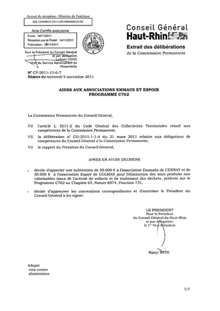 Dans le cadre du programme de Maîtrise des déchets, le rapport propose d'apporter une aide cumulée à hauteur de 80.000 € aux associations Emmaüs et Espoir.