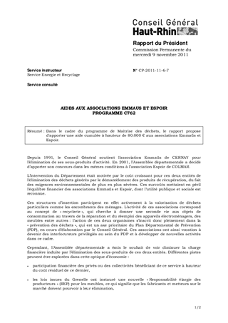 AIDES AUX ASSOCIATIONS EMMAUS ET ESPOIR PROGRAMME C762