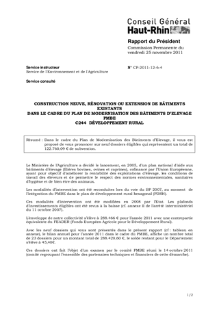 CONSTRUCTION NEUVE, RÉNOVATION OU EXTENSION DE BÂTIMENTS EXISTANTS DANS LE CADRE DU PLAN DE MODERNISATION DES BÂTIMENTS D’ELEVAGE PMBE C244 DÉVELOPPEMENT RURAL