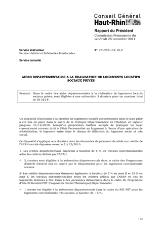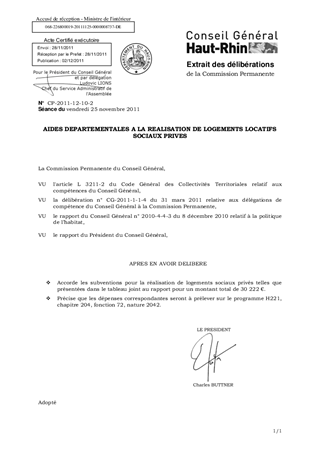 AIDES DEPARTEMENTALES A LA REALISATION DE LOGEMENTS LOCATIFS SOCIAUX PRIVES