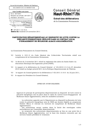 PARTICIPATION DÉPARTEMENTALE AU DISPOSITIF DE LUTTE CONTRE LA PRÉCARITÉ ÉNERGÉTIQUE DÉPLOYÉ DANS LE CONTRAT LOCAL D’ ENGAGEMENT DE MULHOUSE ALSACE AGGLOMÉRATION.