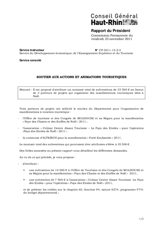 Il est proposé d'attribuer un montant total de subventions de 35 500 € en faveur de 3 porteurs de projets qui organisent des manifestations touristiques liées à Noël.