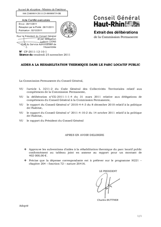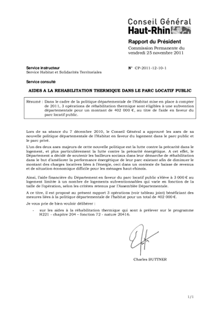 Dans le cadre de la politique départementale de l’Habitat mise en place à compter de 2011, 3 opérations de réhabilitation thermique sont éligibles à une subvention départementale pour un montant de 402 000 €, au titre de l’aide en faveur du parc locatif public.