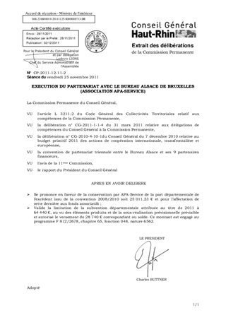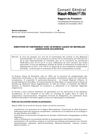 EXECUTION DU PARTENARIAT AVEC LE BUREAU ALSACE DE BRUXELLES (ASSOCIATION APA-SERVICE)