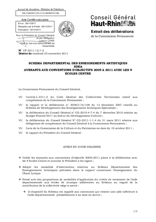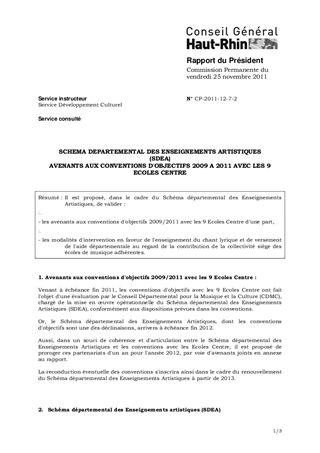 SCHEMA DEPARTEMENTAL DES ENSEIGNEMENTS ARTISTIQUES (SDEA) AVENANTS AUX CONVENTIONS D'OBJECTIFS 2009 A 2011 AVEC LES 9 ECOLES CENTRE