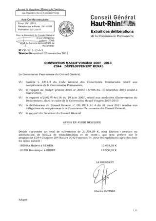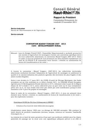 CONVENTION MASSIF VOSGIEN 2007 2013 C244 DÉVELOPPEMENT RURAL