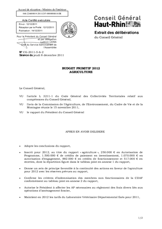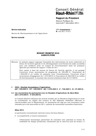 BUDGET PRIMITIF 2012 AGRICULTURE