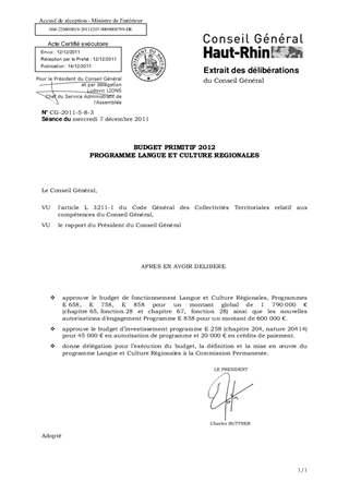 BUDGET PRIMITIF 2012 PROGRAMME LANGUE ET CULTURE REGIONALES