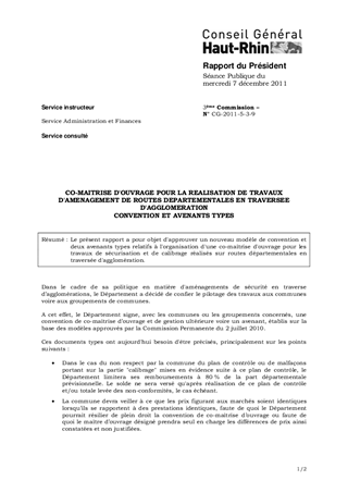 Le présent rapport a pour objet d'approuver un nouveau modèle de convention et deux avenants types relatifs à l'organisation d'une co-maîtrise d'ouvrage pour les travaux de sécurisation et de calibrage réalisés sur routes départementales en traversée d'agglomération.