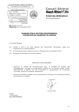 DOMAINE PUBLIC ROUTIER DEPARTEMENTAL CONVENTION DE TRANSFERT DE GESTION