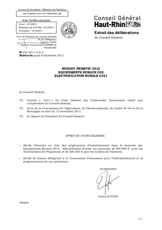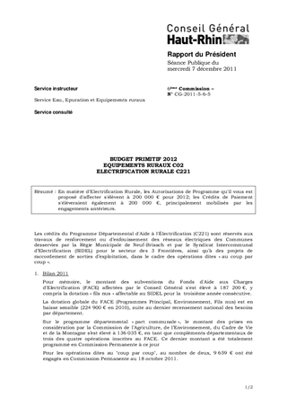 BUDGET PRIMITIF 2012 EQUIPEMENTS RURAUX C02 ELECTRIFICATION RURALE C221