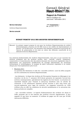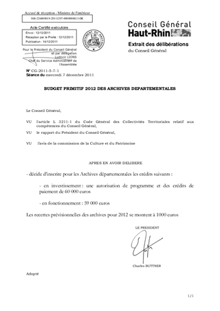 BUDGET PRIMITIF 2012 DES ARCHIVES DEPARTEMENTALES