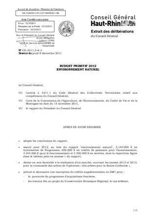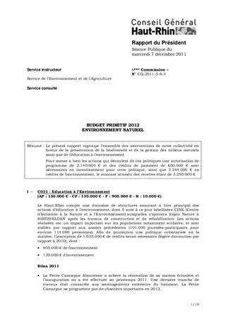 BUDGET PRIMITIF 2012 ENVIRONNEMENT NATUREL