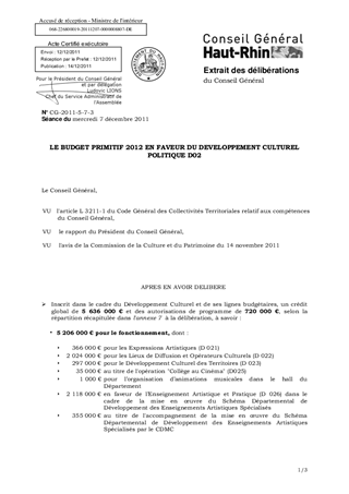 LE BUDGET PRIMITIF 2012 EN FAVEUR DU DEVELOPPEMENT CULTUREL POLITIQUE D02