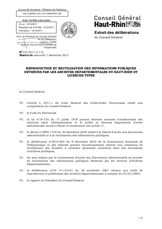 REPRODUCTION ET REUTILISATION DES INFORMATIONS PUBLIQUES DETENUES PAR LES ARCHIVES DEPARTEMENTALES DU HAUT-RHIN ET LICENCES-TYPES