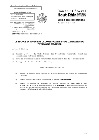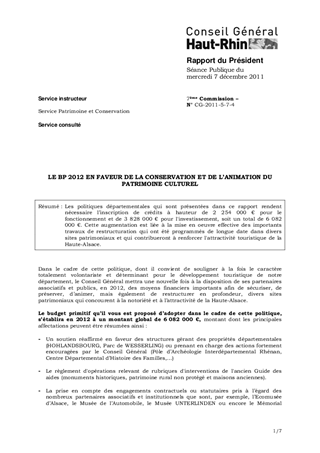 LE BP 2012 EN FAVEUR DE LA CONSERVATION ET DE L’ANIMATION DU PATRIMOINE CULTUREL