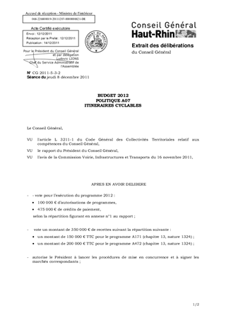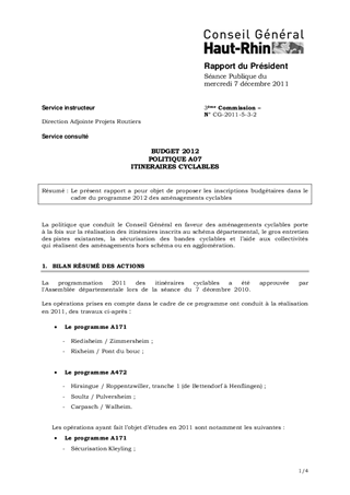 BUDGET 2012 POLITIQUE A07 ITINERAIRES CYCLABLES