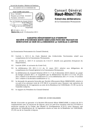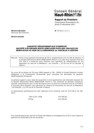 GARANTIE DÉPARTEMENTALE D’EMPRUNT SOCIÉTÉ D’ECONOMIE MIXTE SEMCLOHR POUR DES TRAVAUX DE RÉNOVATION AU SEIN DE LA RÉSIDENCE LA VANCELLE À LIÈPVRE