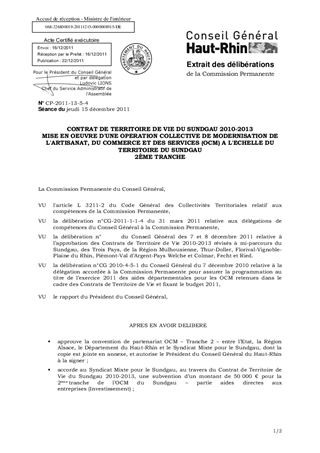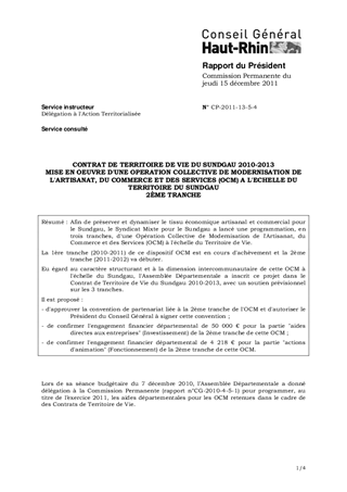 CONTRAT DE TERRITOIRE DE VIE DU SUNDGAU 2010-2013 MISE EN OEUVRE D'UNE OPERATION COLLECTIVE DE MODERNISATION DE L'ARTISANAT, DU COMMERCE ET DES SERVICES (OCM) A L'ECHELLE DU TERRITOIRE DU SUNDGAU 2ÈME TRANCHE