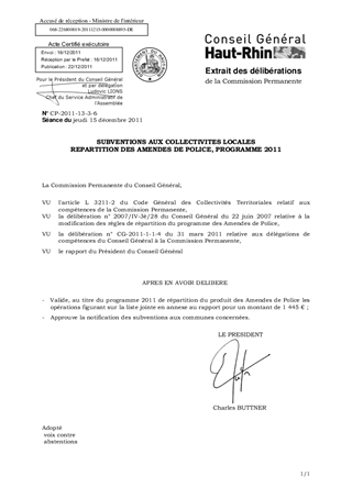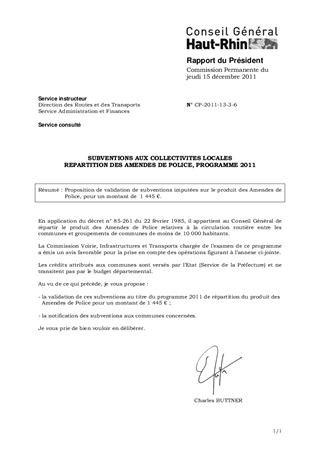 SUBVENTIONS AUX COLLECTIVITES LOCALES REPARTITION DES AMENDES DE POLICE, PROGRAMME 2011