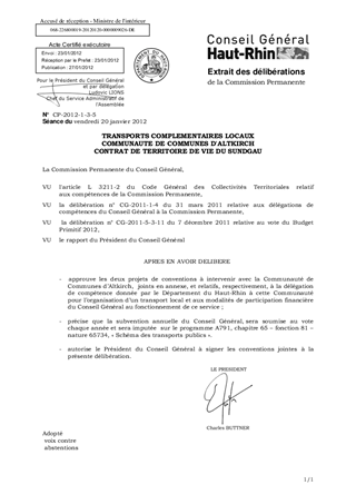 Le présent rapport a pour objet d'approuver le contrat thématique transport pour l'organisation d'un transport local avec la participation financière du Département du Haut-Rhin.