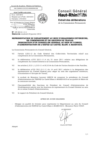 REPRESENTATION DU DEPARTEMENT AU SEIN D’ORGANISMES EXTERIEURS, DE COMMISSIONS ET DE GROUPES DE TRAVAIL DESIGNATION D’UN CONSEILLER GENERAL AU SEIN DU CONSEIL D’ADMINISTRATION DE L’EHPAD LE CASTEL BLANC A MASEVAUX.