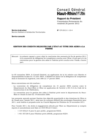 Le présent rapport a pour objet la conclusion des avenants de fin de gestion 2011 à la convention de délégation de compétence conclue avec l’Etat, d'une part et à la convention pour la gestion des aides à l'habitat privé conclue avec l’Anah, d'autre part.