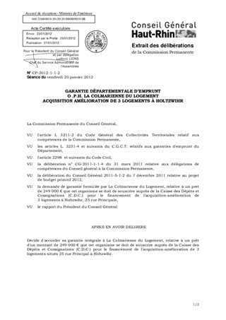 GARANTIE DÉPARTEMENTALE D’EMPRUNT O .P.H. LA COLMARIENNE DU LOGEMENT ACQUISITION AMÉLIORATION DE 3 LOGEMENTS À HOLTZWIHR