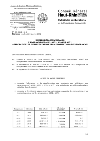 Le Règlement Financier dans son article 9.6 stipule que l’affectation et la désaffectation des Autorisations de Programme relèvent d’une décision de la Commission Permanente. Le présent rapport concerne les programmes n° A111 – A132 - A134 et A171.