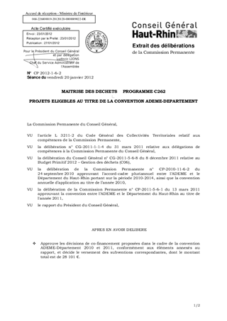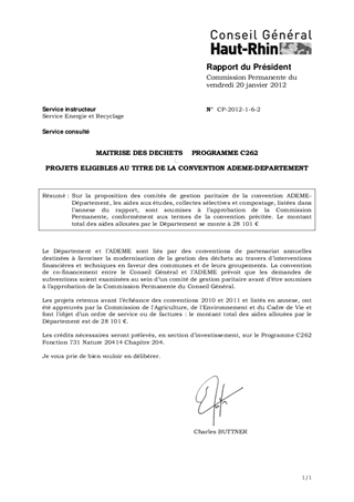 MAITRISE DES DECHETS PROGRAMME C262 PROJETS ELIGIBLES AU TITRE DE LA CONVENTION ADEME-DEPARTEMENT