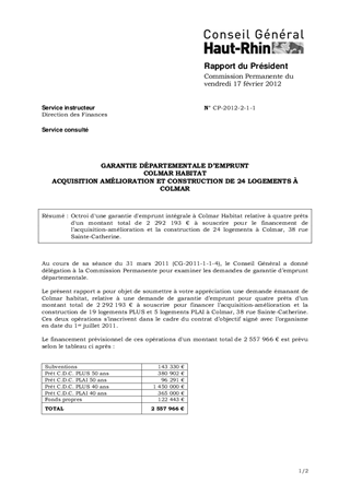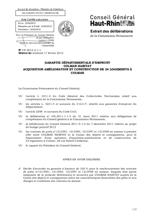 GARANTIE DÉPARTEMENTALE D’EMPRUNT COLMAR HABITAT ACQUISITION AMÉLIORATION ET CONSTRUCTION DE 24 LOGEMENTS À COLMAR
