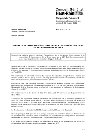 Le présent rapport propose l’approbation et la signature d’un avenant à la convention de financement de la 2ème phase de la LGV Est Européenne, qui a pour objet de préciser les modalités d’appels de fonds.