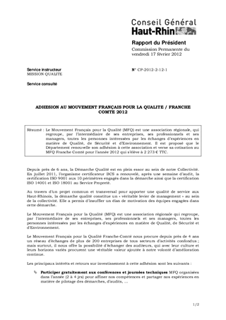 ADHESION AU MOUVEMENT FRANÇAIS POUR LA QUALITE / FRANCHE COMTE 2012