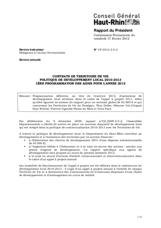 CONTRATS DE TERRITOIRE DE VIE POLITIQUE DE DEVELOPPEMENT LOCAL 2010-2013 1ÈRE PROGRAMMATION DES AIDES POUR L'ANNEE 2012