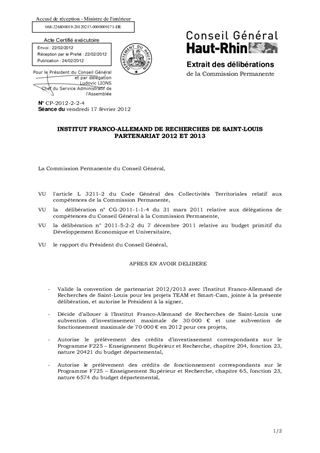 INSTITUT FRANCO-ALLEMAND DE RECHERCHES DE SAINT-LOUIS PARTENARIAT 2012 ET 2013