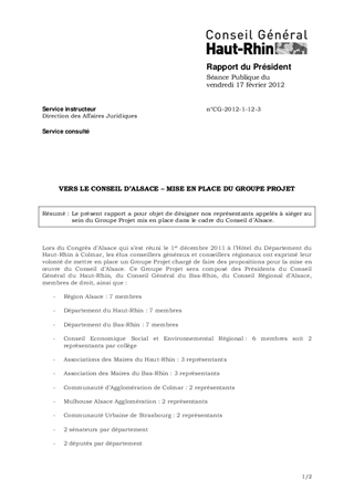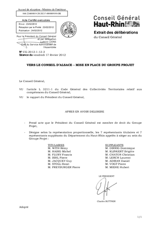 VERS LE CONSEIL D’ALSACE – MISE EN PLACE DU GROUPE PROJET