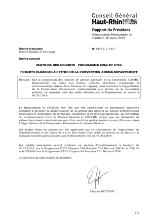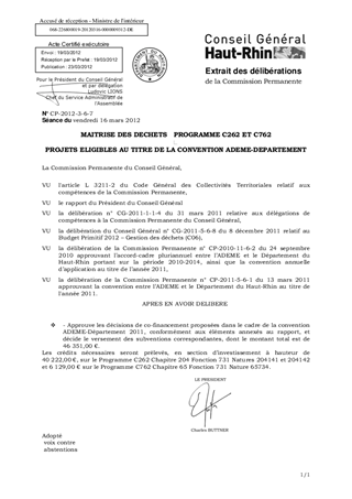 MAITRISE DES DECHETS PROGRAMME C262 ET C762 PROJETS ELIGIBLES AU TITRE DE LA CONVENTION ADEME-DEPARTEMENT