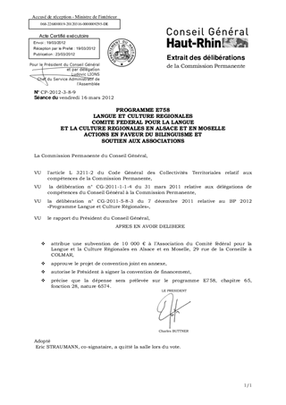 PROGRAMME E758 LANGUE ET CULTURE REGIONALES COMITE FEDERAL POUR LA LANGUE ET LA CULTURE REGIONALES EN ALSACE ET EN MOSELLE ACTIONS EN FAVEUR DU BILINGUISME ET SOUTIEN AUX ASSOCIATIONS
