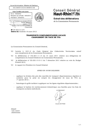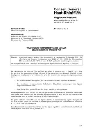 Le présent rapport a pour objet d'approuver le changement de taux de TVA . En effet, la loi de finances rectificative pour 2011, n° 2011-1978 du 28 décembre 2011 a porté de 5,5 à 7,0 %, le taux de TVA applicable aux transports publics. Ce changement de taux s'applique aux transports départementaux réguliers et scolaires.