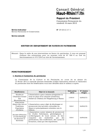 SOUTIEN DU DEPARTEMENT EN FAVEUR DU PATRIMOINE