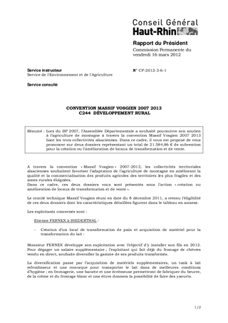 CONVENTION MASSIF VOSGIEN 2007 2013 C244 DÉVELOPPEMENT RURAL