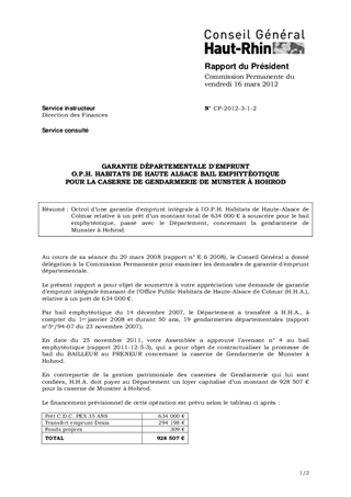 GARANTIE DÉPARTEMENTALE D'EMPRUNT O.P.H. HABITATS DE HAUTE ALSACE BAIL EMPHYTÉOTIQUE POUR LA CASERNE DE GENDARMERIE DE MUNSTER À HOHROD