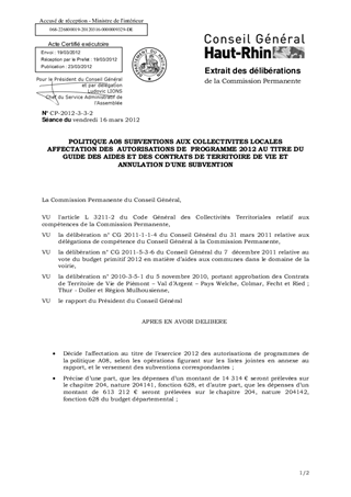 POLITIQUE A08 SUBVENTIONS AUX COLLECTIVITES LOCALES AFFECTATION DES AUTORISATIONS DE PROGRAMME 2012 AU TITRE DU GUIDE DES AIDES ET DES CONTRATS DE TERRITOIRE DE VIE ET ANNULATION D'UNE SUBVENTION