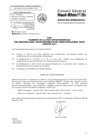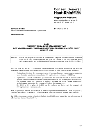 C851 PAIEMENT DE LA PART DÉPARTEMENTALE DES MESURES AGRO ENVIRONNEMENTALES TERRITORIALISÉES MAET ANNUITÉ 2011