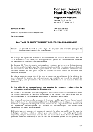 Le présent rapport a pour objet de proposer une nouvelle politique de renouvellement des couches de roulement.