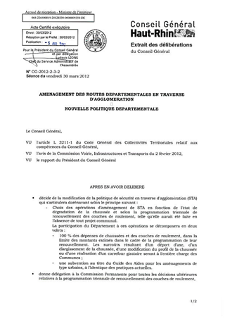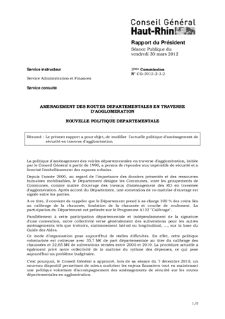 AMENAGEMENT DES ROUTES DEPARTEMENTALES EN TRAVERSE D'AGGLOMERATIONNOUVELLE POLITIQUE DEPARTEMENTALE