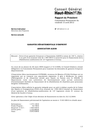 GARANTIE DÉPARTEMENTALE D'EMPRUNT ASSOCIATION ALEOS