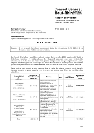 Il est proposé d'attribuer un montant global de subventions de 93 019,50 € en faveur de trois établissements hôteliers.