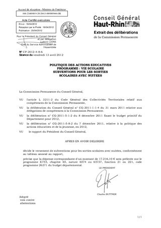 POLITIQUE DES ACTIONS EDUCATIVES PROGRAMME : VIE SCOLAIRE SUBVENTIONS POUR LES SORTIES SCOLAIRES AVEC NUITEES
